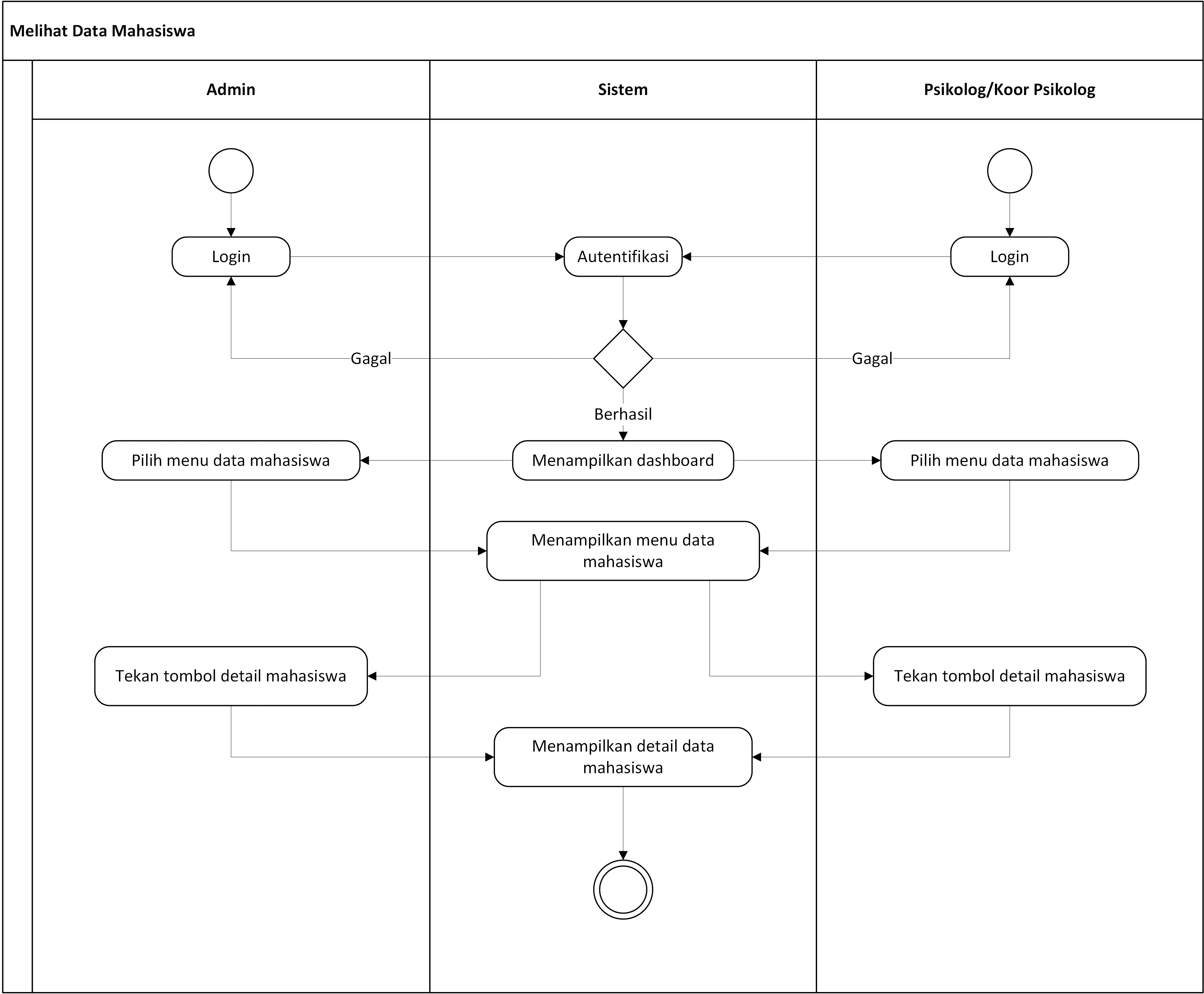 Activity diagram berfungsi untuk menggambarkan berbagai aktivitas yang dapat terjadi pada sistem. Salah satu aktivitas yang digambarkan adalah aktivitas melihat data mahasiswa.