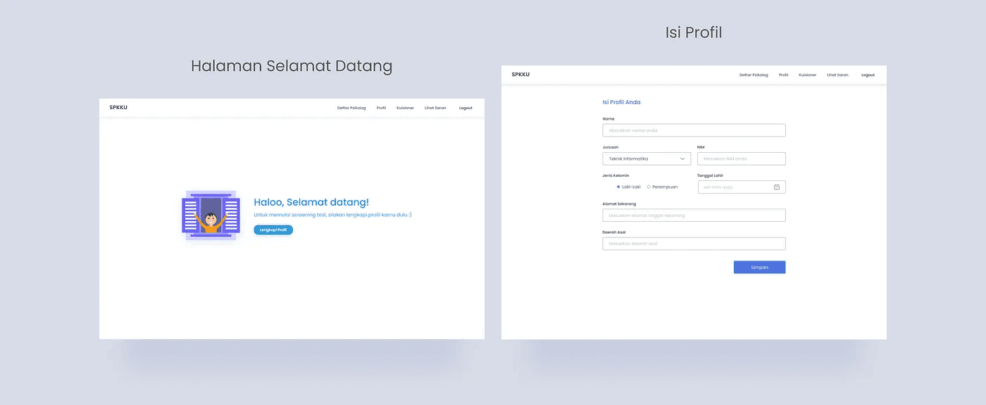 Isi Profil: Sebelum memulai untuk mengisi kuesioner/tes, mahasiswa harus mengisi profil lebih dulu. Hal itu agar data kuesioner lengkap dengan profil pengisinya.